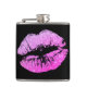 Girly Faux Glitter Purple Lips Black Custom Flask