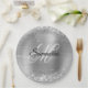 Girly Faux Silver Glittery Foil Monogram Paper Plate
