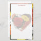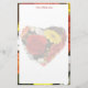 Colourful yet slightly transparent flower bouquet cut into a heart is set over a white background in the writing area of this stationery template design. The writing paper border is a cut from the same rose and daisy photograph at full opacity. Personalize the template field with your information, remove the text completely for a blank sheet or click customize to select a font in the style, size, and colour you prefer.