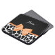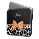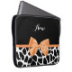A girly black and white giraffe print 15'' laptop sleeve with a cute orange ribbon tied into a stylish bow. Personalize this trendy animal print design by adding your name. Flat printed image, not actual bow.