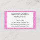 This chic, girly and glam business card has a hot pink glitter sparkles background on both sides. On the front of the business card is your first name in an elegant black script with a large monogram initial in white behind it. Then on the back is your name, job title and contact details with a white background. Easily personalize this business card. Click "customize further" to change the text colour and font style and size. This business card is perfect for a makeup artist, hairstylist, beauty consultant, events planner or salon owner.