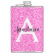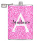 Girly Glam Hot Pink Glitter Sparkles Monogram Name Hip Flask