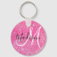 Girly and glam hot pink glitter sparkles monogram name and initial keychain. Personalize this pretty keychain with your name, monogram or initial. You can even change the text colour and font style using the customize option!