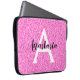 Girly Glam Hot Pink Glitter Sparkles Monogram Name Laptop Sleeve
