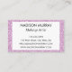 This chic, girly and glam business card has a lilac purple glitter sparkles background on both sides. On the front of the business card is your first name in an elegant black script with a large monogram initial in white behind it. Then on the back is your name, job title and contact details with a white background. Easily personalize this business card. Click "customize further" to change the text colour and font style and size. This business card is perfect for a makeup artist, hairstylist, beauty consultant, events planner or salon owner.