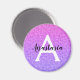 Girly and glam ombre purple glitter sparkles monogram name and initial magnet. Personalize with your custom name in black and your monogram initial in white. You can change the text colour and font style and size using the customize option.