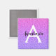 Girly and glam ombre purple glitter sparkles monogram name and initial magnet. Personalize with your custom name in black and your monogram initial in white. You can change the text color and font style and size using the customize option.