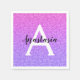 Girly and glam ombre purple glitter sparkles monogram name and initial napkin. Personalize with your custom name in black and your monogram initial in white. You can change the text colour and font style and size using the customize option.