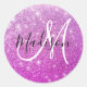 Girly & Glam Purple Glitter Sparkles Monogram Name Classic Round Sticker