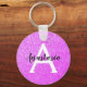Girly and glam purple glitter sparkles monogram name and initial keychain. Personalize with your custom name in black and your monogram initial in white. You can change the text colour and font style and size using the customize option.