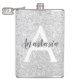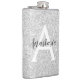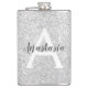 Girly Glam Silver Glitter Sparkles Monogram Name Hip Flask