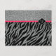 Girly Glitter Silver Pink Zebra Add Your Initial Postcard