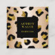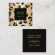 Modern, girly animalier networking card featuring digital image of leopard print in black and glitter gold over a super trendy gold metallic background.. Black stripe overlay. Great for beauty, fashion , entertainment and event professionals.