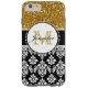 Girly Gold Glitter Black Damask Personalized Case-Mate iPhone Case