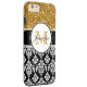 Girly, gold glitter printed, black and white damask you can personalize with your monogram initial and your name. A cute monogrammed design for her. Glitter is a PRINTED photo effect. Damask Gallery© Other colours and styles available in our shop at www.zazzle.com/DamaskGallery*
