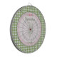 A cute country style green gingham monogram dartboard with a pink gingham label and a girly filigree pink ribbon. Personalize by adding your name and initials. Will appeal to the stylish and feminine girl.