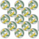 This set of 13 team colours volleyball stickers (each approximately 3 inches) for girls features volleyballs with green, gold and white panels (the green and gold panels are blended with an artsy, girly floral pattern) - customize each sticker with a player's name & jersey number plus school or club name and mascot name - economically priced at a little more than $1 per 3" sticker - by katz_d_zynes