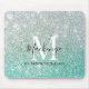 Girly Green Silver Ombre Glitter Monogram Name Mouse Pad