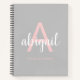 Girly Grey Pink Stylish Modern Monogram Name Notebook