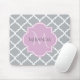 Girly Grey Quatrefoil Lavender Monogram and Name Mouse Pad