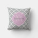 Girly Grey Quatrefoil Lavender Monogram and Name Throw Pillow