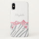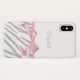 A trendy grey tiger stripes pattern Barely There iPhone X Case embellished with a picture of a girly pink satin bow. Personalize by adding the name of your favourite girl. Flat printed image, NOT affixed with an actual ribbon.