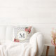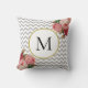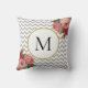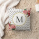 Girly Grey White Chevron Vintage Floral Monogram Throw Pillow