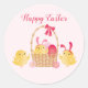 Girly Happy Easter Chicks Pink Classic Round Sticker
