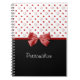 A girly notebook with cute red hearts and trendy polka dots. Personalize by adding your name. Perfect for a stylish teen girl into fun and fashion! Image is flat without literal embellishments.