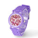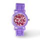 Many multicolored hearts in different shapes and sizes adorn this watch face.
