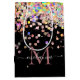 Girly Holographic Glitter & Sparkle Monogram Black Medium Gift Bag