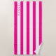 Girly Hot Pink White Cabana Strip Personalized Beach Towel