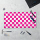 Girly Hot Pink White Wavy Chequerboard Pattern Desk Mat