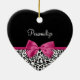 Girly Leopard Print and Dark Pink Bow Glam Design Ceramic Ornament