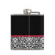 Personalize by adding the name of any girly girl to this girly black and white leopard print 6 oz. flask with an cute bright red ribbon tied into a stylish bow. This fashionable animal print design is a flat printed image, and does not contain actual ribbon.