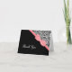 A girly pink and black thank you card with a modern black and white leopard print and a feminine light pink ribbon tied into a stylish bow. Personalize by adding a special message of thanks inside. Flat printed image, not actual bow.