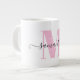 Girly Light Pink and White Polka Dot Monogram Large Coffee Mug