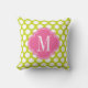 Girly Lime & Pink Big Dots Monogrammed Throw Pillow