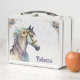 Pretty and girly mystical and magical horse with flowers in its purple mane and sparkling glitter. Easily personalize with her name in a trendy purple font. This is one in a collection of colourful horse designs for back to school.