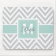 Girly Mint Green Grey Chevron Pattern Monogram Mouse Pad