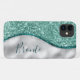 Stunning, glamorous, classy, elegant personalized phone case, featuring mint, turquoise, emerald green and silver design. Customize with your own name.