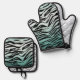 Girly Mint Ombre Black Zebra Print Oven Mitt & Pot Holder Set