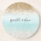 Girly Mint Watercolor Ombre Gold Glitzy Glitter Coaster