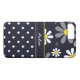 A Barely There iPhone 6 Plus Case with a girly retro mod flower pattern on the top with cute white daisies with yellow centres against a navy blue background, and a trendy blue and white polka dot pattern on the bottom. Any girly girl would love to have her name personalized on this stylish design.