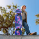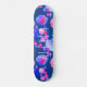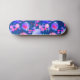 Colorful purple, navy, and pink abstract modern art skateboard with personalized name in casual hand-lettered white typography script.