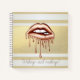 Girly Modern Gold Stripes, Metallic Dripping Lips Notebook