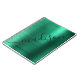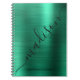 Modern, girly green metal monogram script signature custom personalized spiral notebook. This feminine design featuring a faux green brushed metallic background, a hand-writing signature name or monogram text template. The name is written in a huge beautiful swirly hand lettered swash tail font style. Great feminine gift for girls and woman for school, home office, business, birthday, wedding, bridal shower, sweet 16 birthday party, or anyone who loves pretty girly modern style.