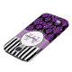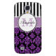 Modern girly purple glitter (printed) and black damask with black and white stripes pattern you can personalize with your monogram Initial and your name. Damask Gallery© Other colors and styles available in our shop at www.zazzle.com/DamaskGallery*. A cute design for her, the fashionista who wants a cute cool stylish monogrammed design.