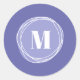 The design features your monogram inside a periwinkle (light purple) abstract circle on a purple blue shade) background.