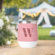 Customizable Monogram and Name written over the monogram in shades of pink and blush. The monogram is a big letter in dark pink red and the name is written in handwriting letters with very pale pink colour.
